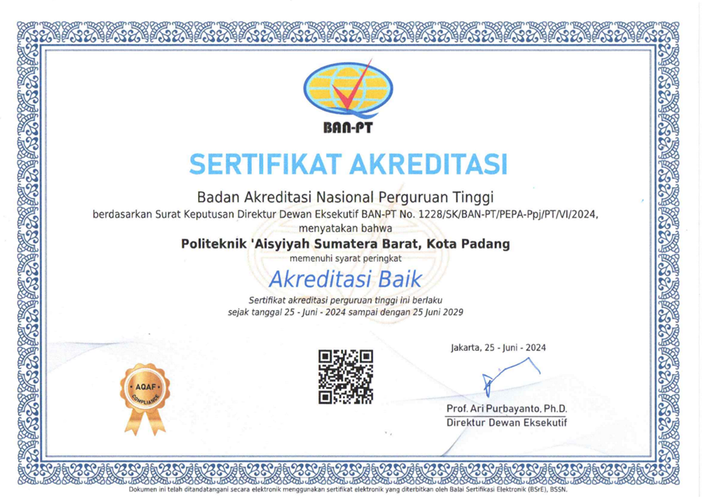 - Alamat Kantor BPM: Kampus Politeknik ‘Aisyiyah Sumatera Barat, Jl. Penjernihan III, Gunung Pangilun, Kecamatan Padang Utara, Kota Padang